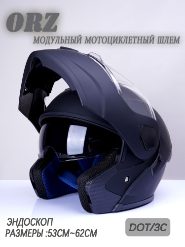 ORZ Мотошлем, цвет: черный матовый, размер: L
