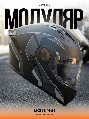 Мотошлем модуляр HelmFlex, черный, размер XL