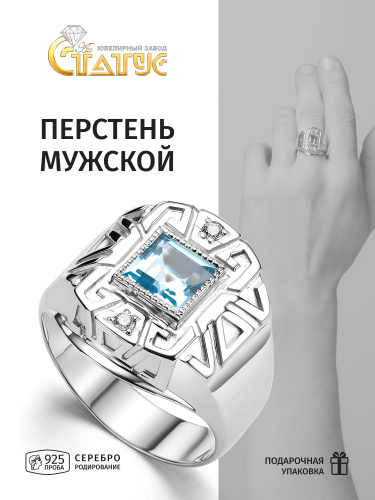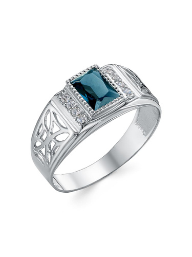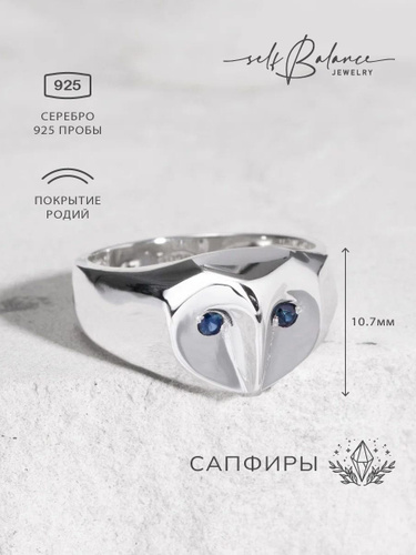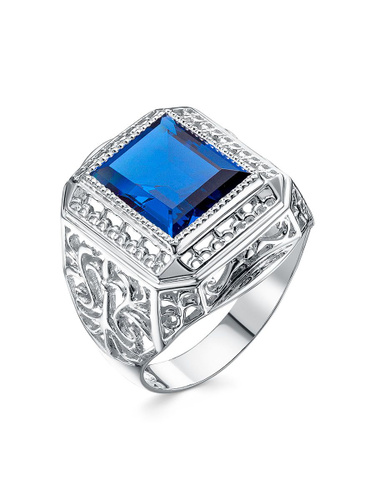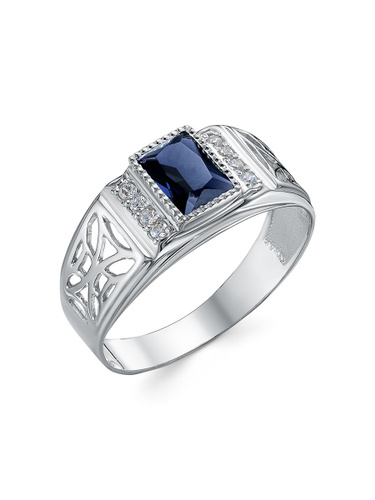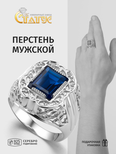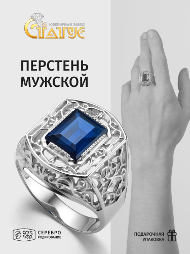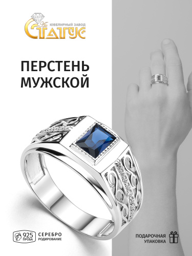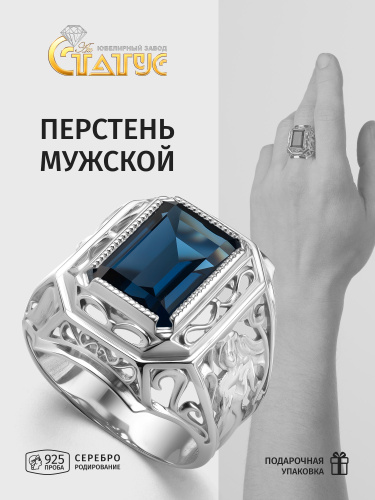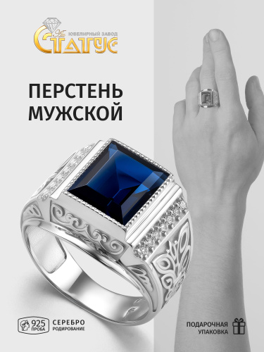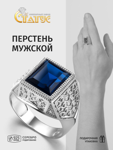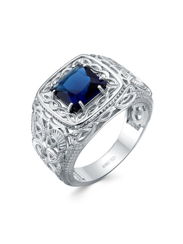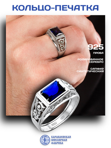 Караваевская Ювелирная Фабрика Печатка/кольцо коллекция "Наследие кельтов" родированное серебро 925 пробы с сапфиром синтетическим (искусств. вст.)