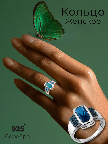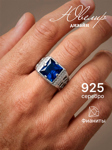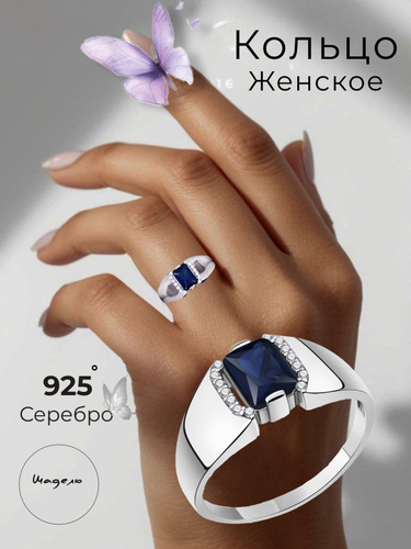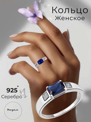 Кольцо серебряное 925 ювелирное женское сапфир искусственный фианит