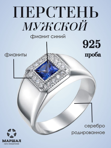 Маршал Кольцо Серебро родированное 925 пробы