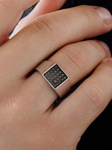 АЛЬКОР Кольцо серебро 925 мужское с черным бриллиантом