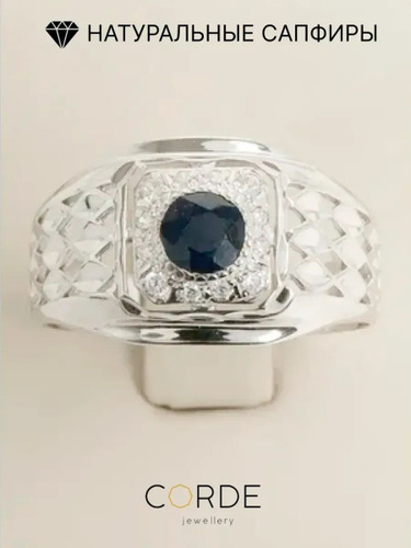 CORDE Кольцо с сапфиром натуральным, серебряная печатка.
