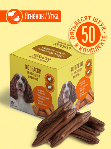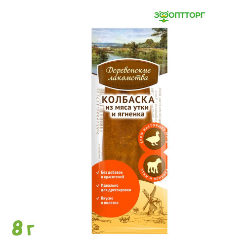 Лакомство для взрослых собак всех пород "Деревенские лакомства" Мини-колбаски из мяса утки и ягненка, 8 гр.х50 шт.