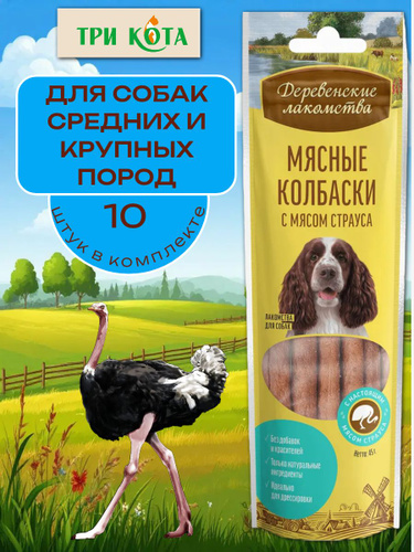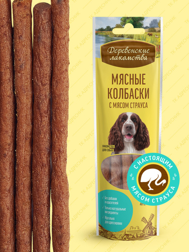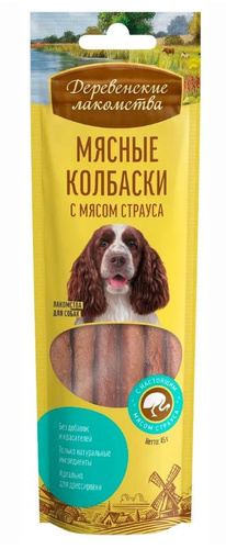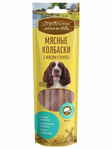 Деревенские Лакомства для собак Мясные колбаски с мясом страуса 45 г