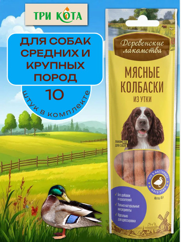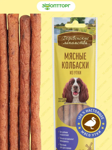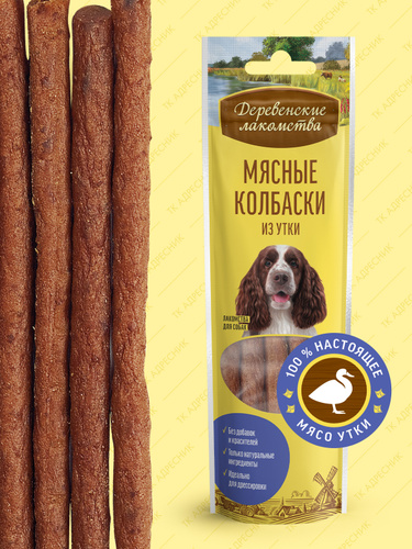 Лакомство для взрослых собак всех пород "Деревенские лакомства" Мясные колбаски из утки, 45 гр.