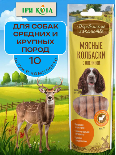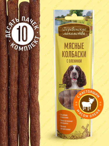 Лакомство для взрослых собак всех пород "Деревенские лакомства" Мясные колбаски с олениной, 45 гр.х10 шт.