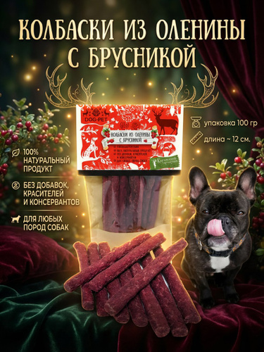 Лакомство для собак Колбаски из оленины с Карельской брусникой от Dog-Pet для мелких, средних и крупных пород - 100 г