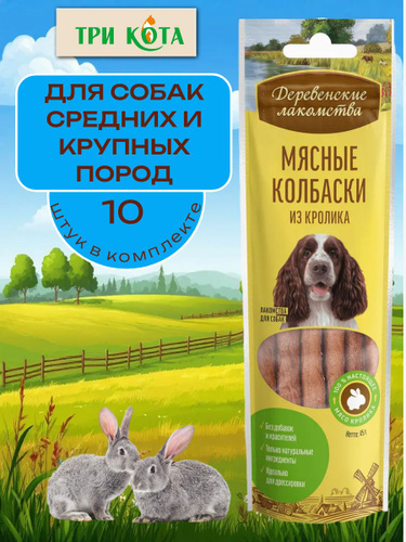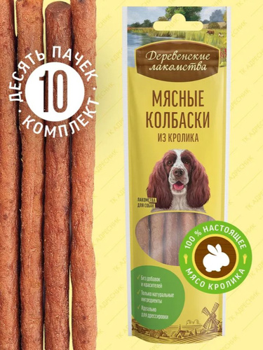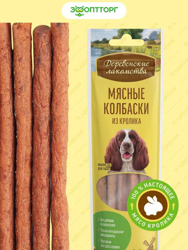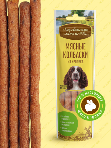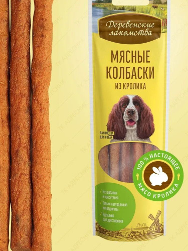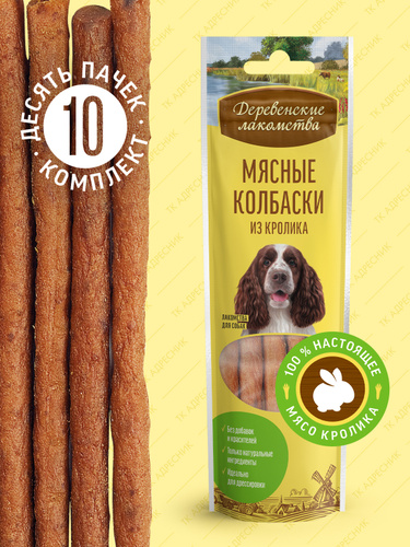 Лакомство для взрослых собак всех пород "Деревенские лакомства" Мясные колбаски из кролика, 45 гр.х10 шт.