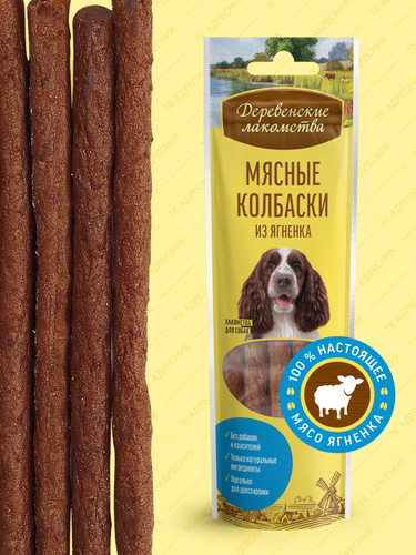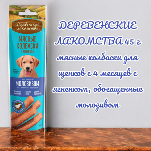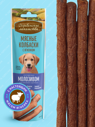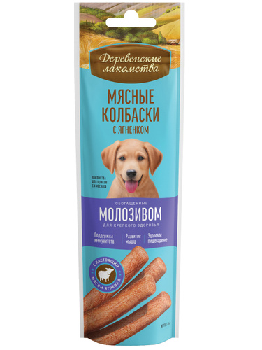 ДЕРЕВЕНСКИЕ ЛАКОМСТВА 45 г мясные колбаски для щенков с 4 месяцев с ягненком, обогащенные молозивом