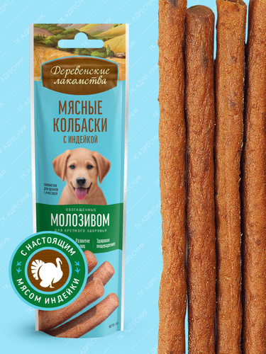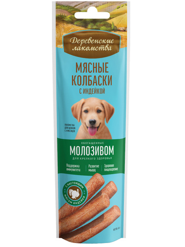 Деревенские лакомства для щенков Мясные колбаски с индейкой и молозивом 45г