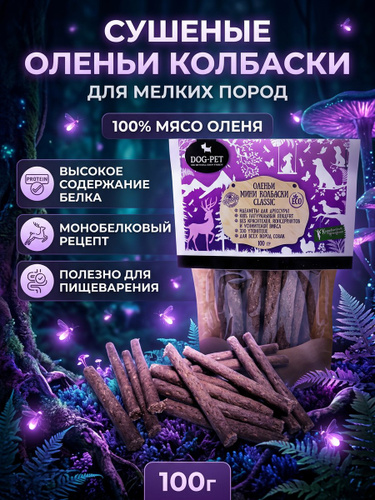 Лакомство для собак Оленьи колбаски Classic от Dog-Pet для мелких, средних и крупных пород - 100 г