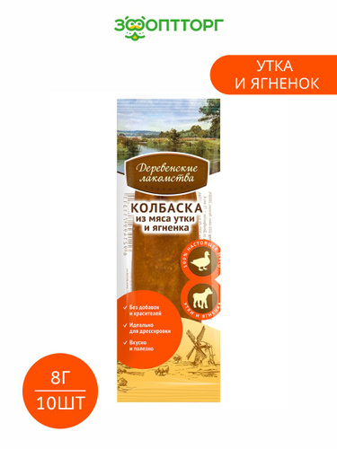 Деревенские лакомства "Мини колбаски" лакомство для собак с уткой и ягненком, 8 г