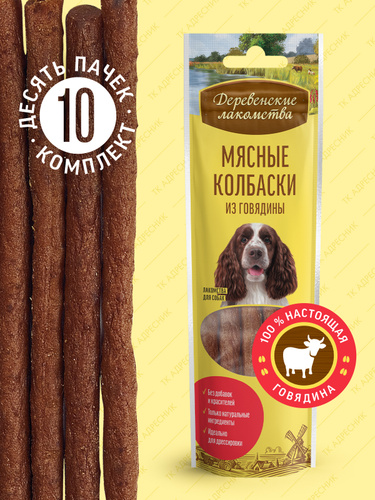 Деревенские лакомства для собак. Мясные колбаски из говядины. 10шт * 45г.