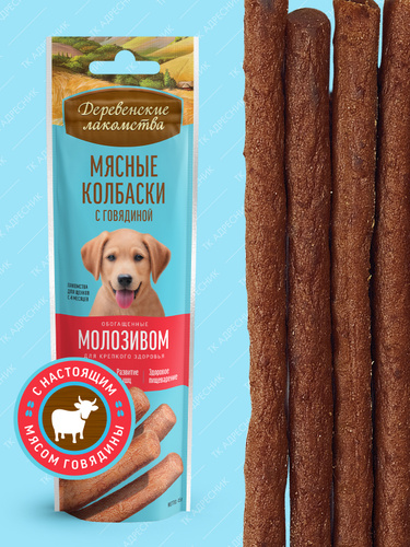 Лакомство для взрослых собак всех пород "Деревенские лакомства" Мясные колбаски из говядины, 45 гр.