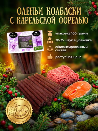 Лакомство для собак и кошек Оленьи колбаски с Карельской форелью от Dog-Pet для мелких, средних и крупных пород - 100 г