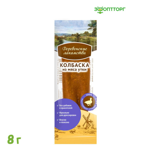 Лакомство для взрослых собак всех пород "Деревенские лакомства" Мини-колбаски из мяса утки, 8 гр.х50 шт.