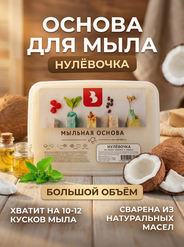 Мыльная основа для мыловарения 1 кг. "Нулевочка", из масла пальмы и кокоса Выдумщики
