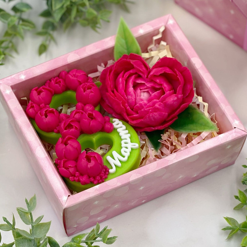Набор мыла ручной работы "С 8 марта - пионы. Яркая фуксия /сувенирное мыло / подарок на 8 марта девушке, девочке, подарок учителю в школу, воспитателю