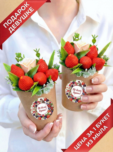 Мини-букет из мыла "Клубника - крафт" 1шт./ Magic Benefit Soap / подарок женщине на 8 марта