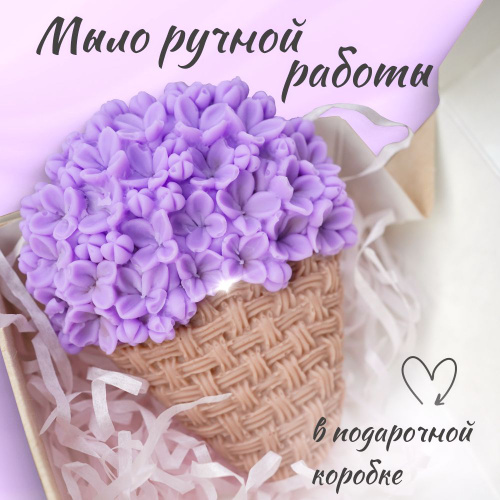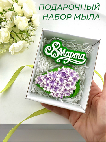 Набор мыла с сиренью "С 8 Марта" (сиреневый) / Мыло подарочное ручной работы / Мир Мыла