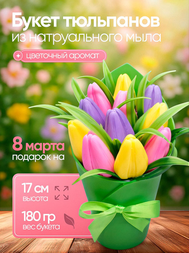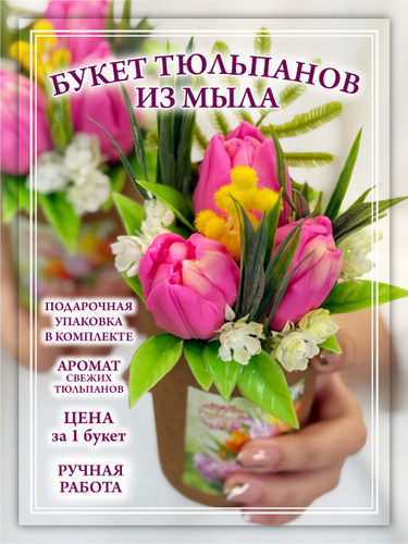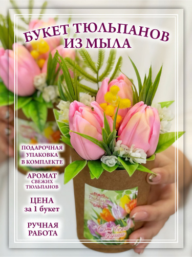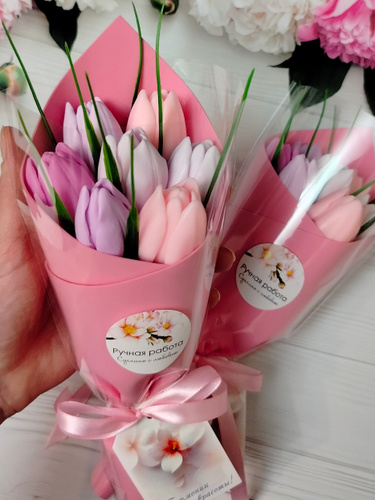 Мыло ручной работы Букет тюльпанов готовый подарок на 8 марта