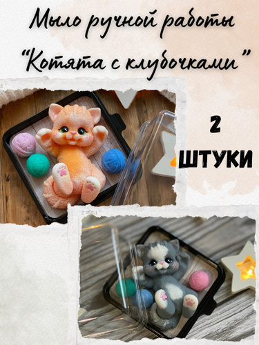 Мыло ручной работы "Котята с клубочками" 2шт.