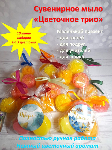 Мыло ручной работы "Цветочное трио" набор 10 штук / подарок на 8 марта гостям, коллегам.