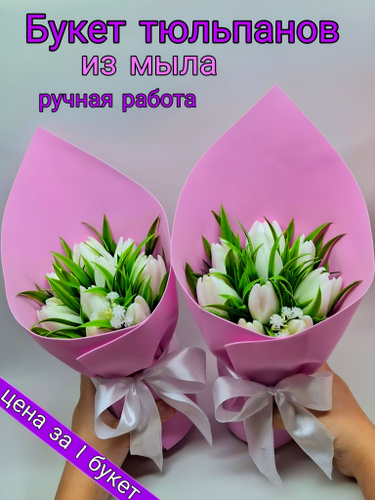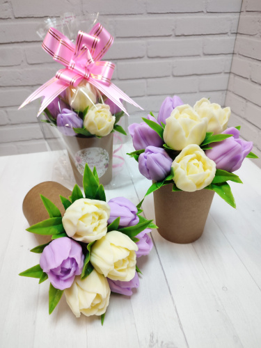 Букет тюльпанов белые и сиреневые мыло ручной работы на 8 марта