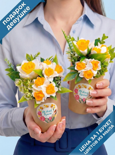 Мини-букет из мыла "Нарцисс - крафт" 1шт./ Magic Benefit Soap / подарок девушке на 8 марта