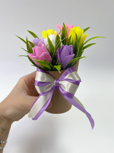 Мини - букет из мыла "тюльпановое поле" 1 шт /подарок на 8 марта / ручная работа / букет и з мыла подарочный