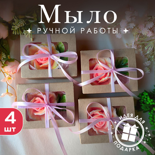 Мыло Ручной работы "Роза" (комплектация 4шт в индивидуальной подарочной упаковке)