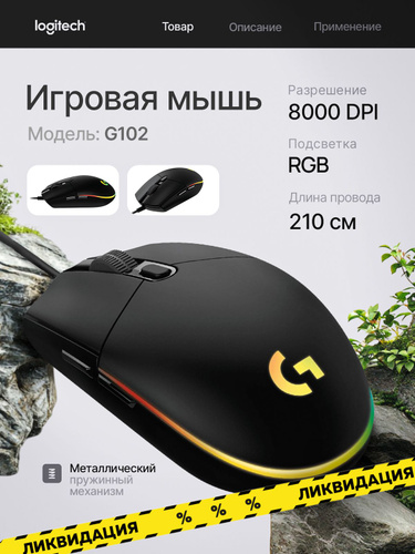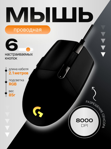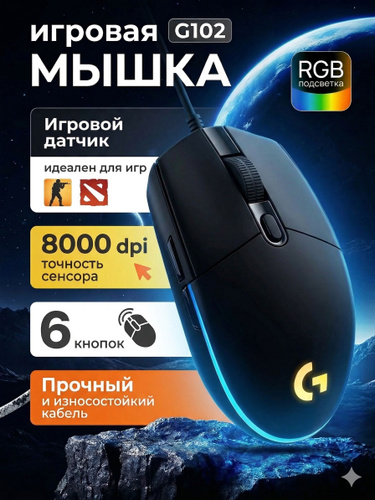 Logitech G G102 LIGHTSYNC Проводная игровая мышь, черная