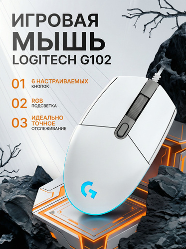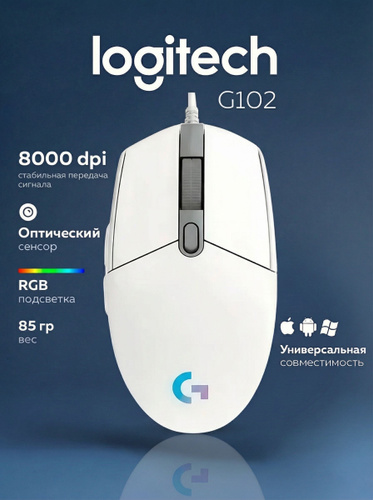 Игровая мышь проводная Logitech G102 LIGHTSYNC (Белая) мышка для компьютера