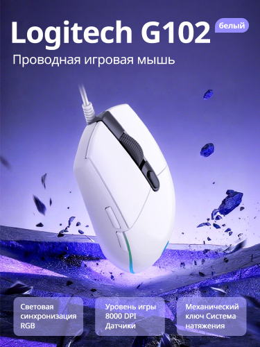 Компьютерная мышь проводная Logitech G102 LIGHTSYNC белый