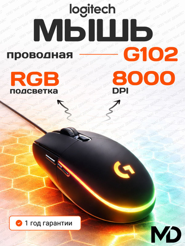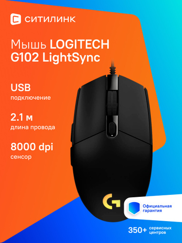 Игровая мышь проводная Logitech G102 LIGHTSYNC, черный.