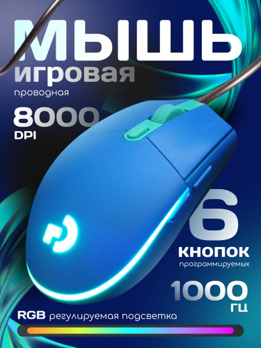 Мышь проводная Logitech G102 LightSync, игровая, оптическая, USB, 8000dpi, синий