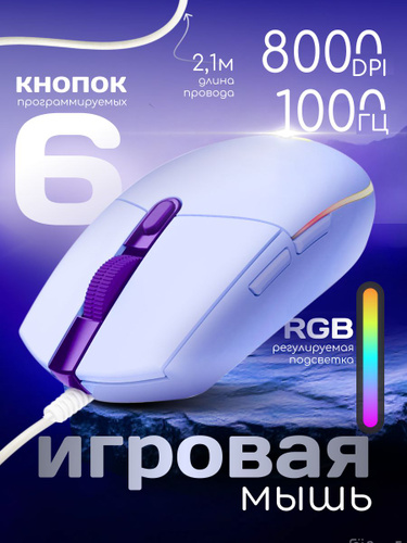 Игровая мышь проводная / мышь игровая Logitech G102 Lightsync фиолетовая
