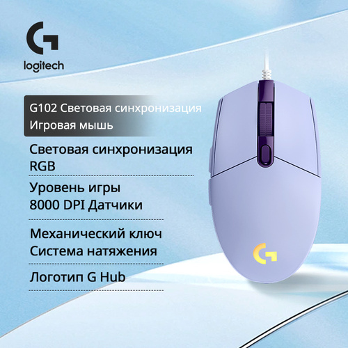 Игровая компьютерная мышь Logitech G102 LIGHTSYNC, фиолетовая