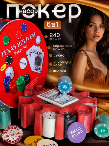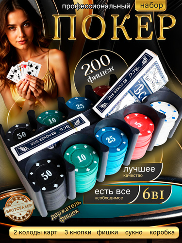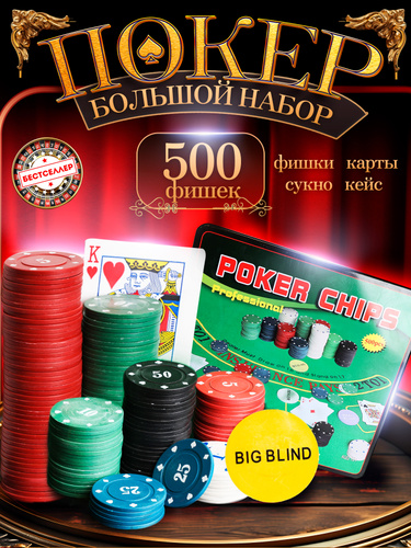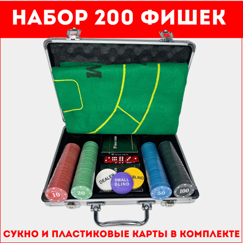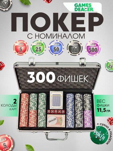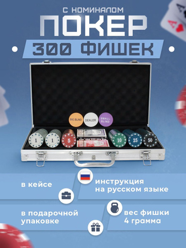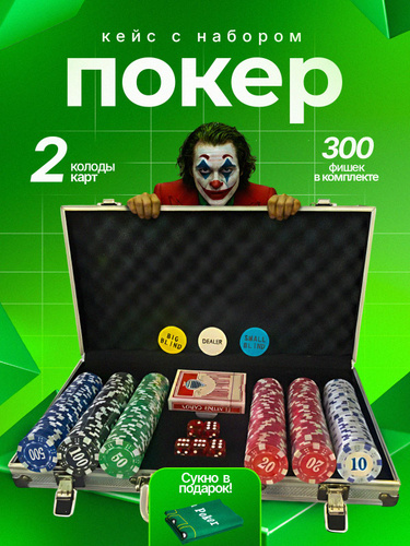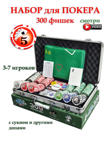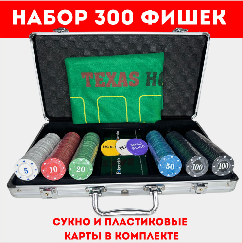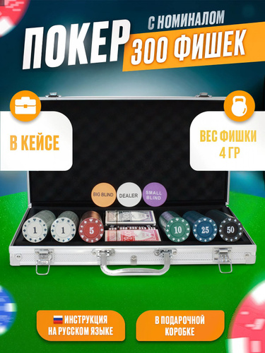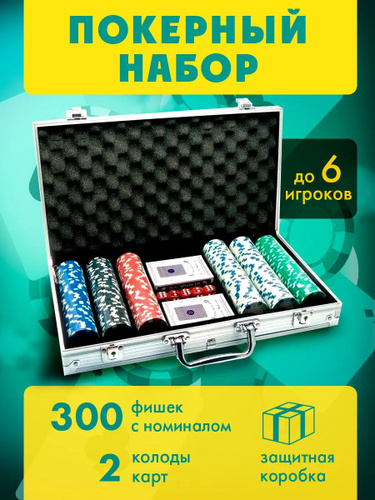 Покерный набор игра настольная 300 фишек покер в кейсе сукно