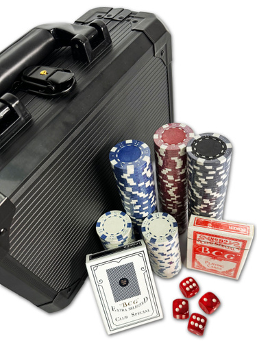 Набор для покера в алюминиевом кейсе, 300 фишек для покера 4г.