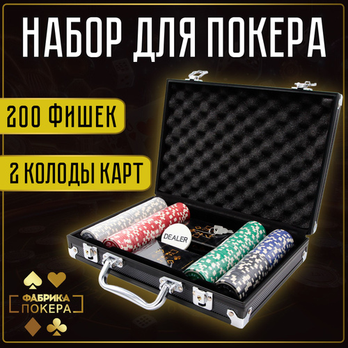 Покерный набор премиум Фабрика Покера 300 фишек 14 грамм с номиналом в чёрном кейсе