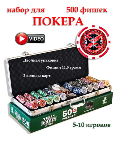 Набор для покера в алюминиевом кейсе, 500 фишек для покера 4г.
