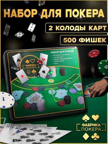 Покерный набор Фабрика Покера 200 фишек 3,5 грамма с номиналом с картами и сукном в жестяной коробке