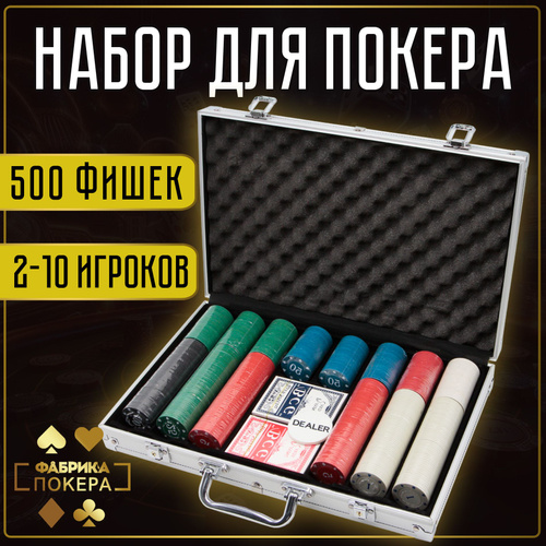 Покерный набор Фабрика Покера 500 фишек 4 грамма с номиналом в алюминиевом кейсе