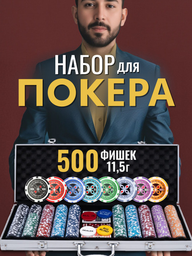 Покерный набор Фабрика Покера 500 фишек 11 грамм с номиналом в черном кейсе