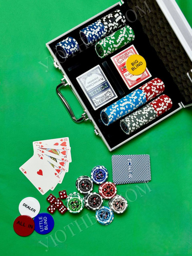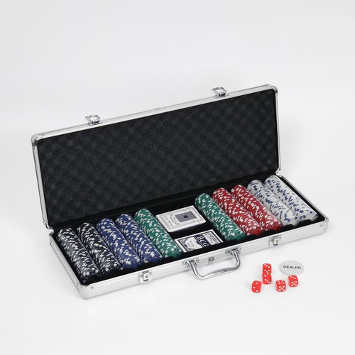 Набор для покера в металлическом кейсе, 2 колоды, фишки 500 шт. б/номинала, 5 кубиков, 20,5 56 см