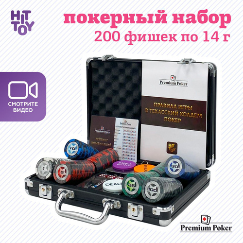 Покерный набор Premium Poker Black Stars, 200 фишек 14 г с номиналом в чемодане
