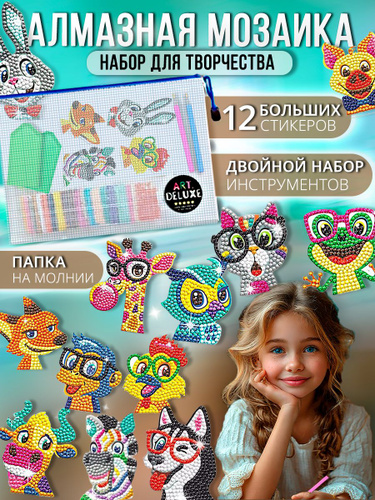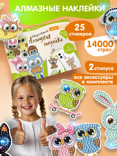 Алмазная мозаика для детей круглые стразы большой развивающий набор для девочки