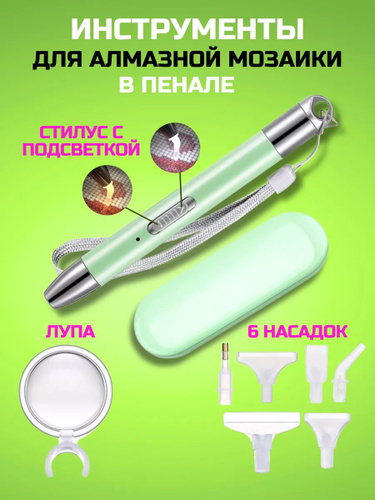 Набор для выкладки для алмазной мозаики. Стилус с подсветкой